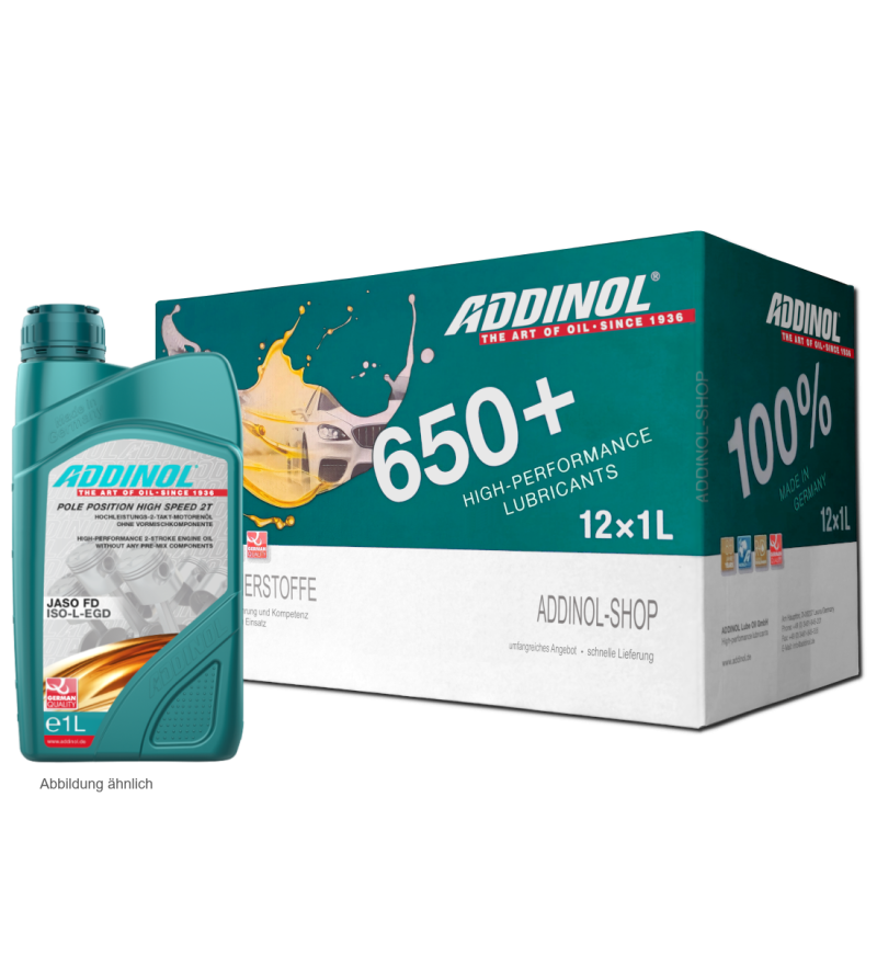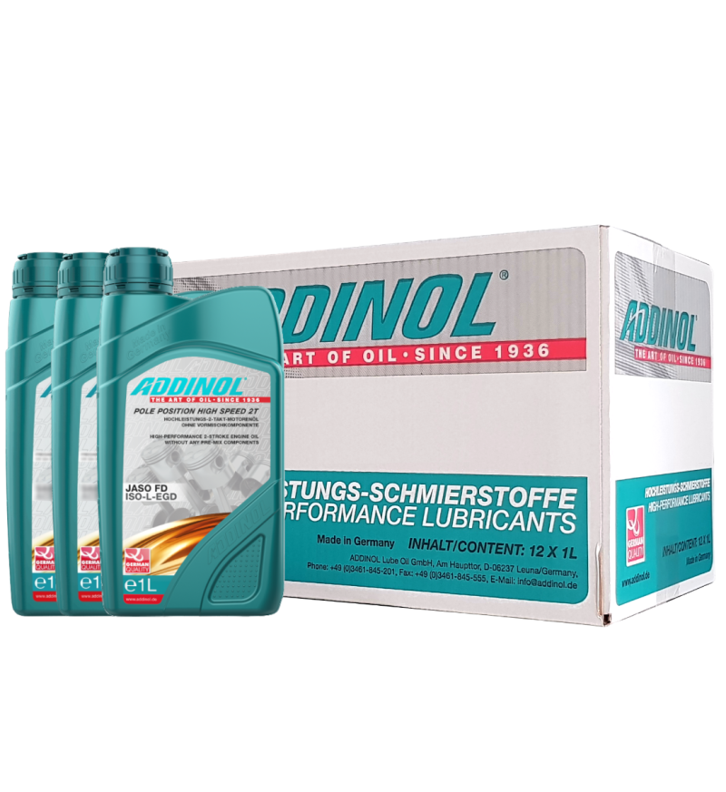 ADDINOL Pole Position High Speed 2T ist ein 2-Takt-Hochleistungsmotorenöl mit hochwertigen Ester Komponenten und innovativen Additiv Technologien für höchste Beanspruchung im Rennsport und auf der Straße. Das Produkt wurde unter härtesten Bedingungen im SIMSON GP getestet und erfolgreich von verschiedenen Rennsport-Teams eingesetzt.