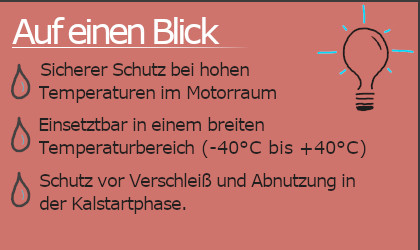 Hohe Belastbarkeit• Stabiler Schmierfilm bei hohen Temperaturen. Effektiver Schutz bei hohen Temperaturen ist natürlich unerlässlich, damit Ihr Motor leistungsstark und zuverlässig bleibt. Dafür sorgt das SAE 0W-40 Motoröl auf ideale Weise. Im Gegensatz zu einem SAE 5W-30 Öl kann es unter hohen Temperaturen noch einmal besser einen stabilen Schmierfilm gewährleisten. Um herauszufinden, wie sich das Motoröl bei hohen Temperaturen verhält, wird die kinematische Viskosität gemessen. Dabei wird geprüft, wie lange das Öl bei 100°C benötigt um eine definierte Strecke zurückzulegen. |